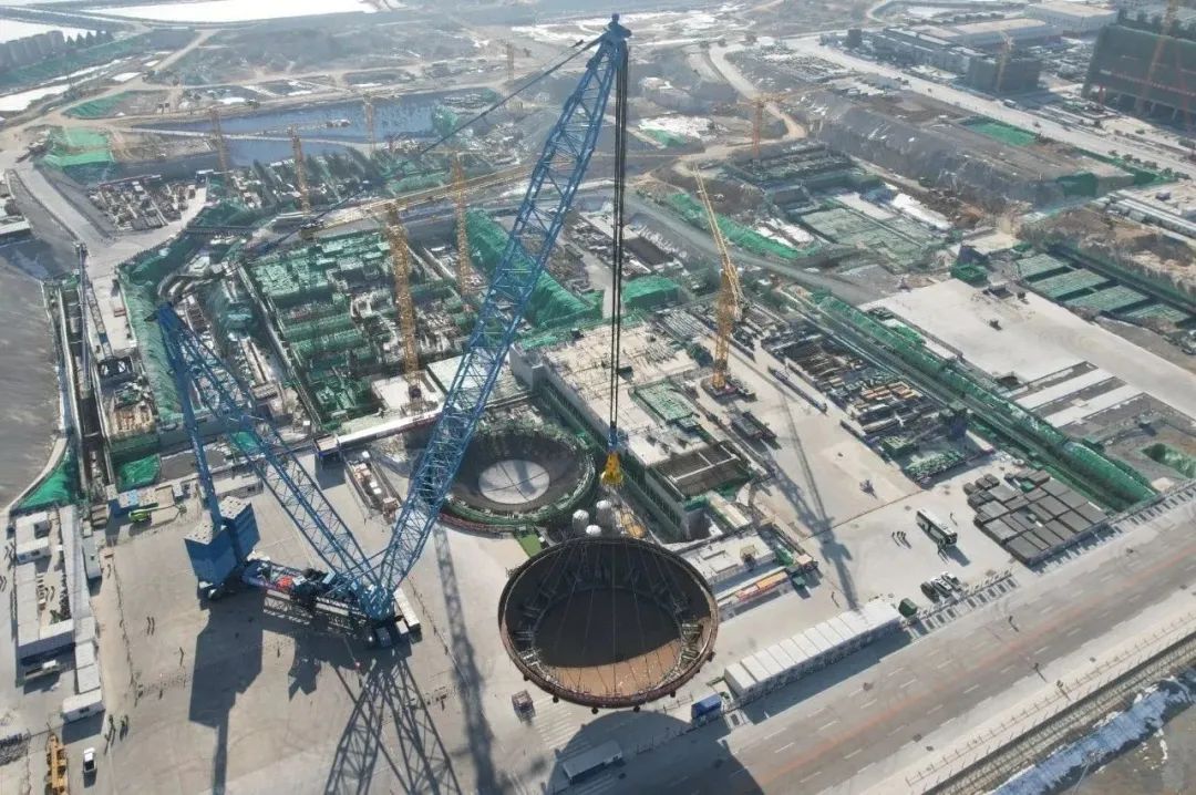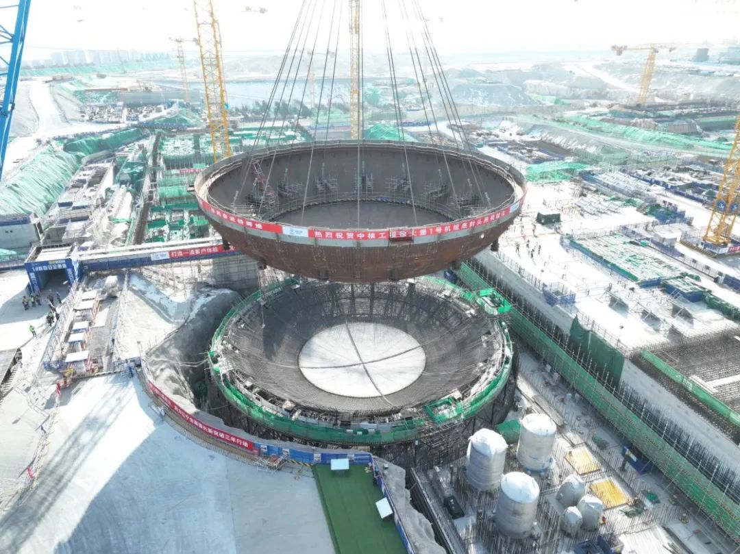 近日,徐大堡核電1號機組CV底封頭吊裝順利完成。 巨力索具成套吊裝系統(tǒng)確保吊裝過程穩(wěn)步進行。