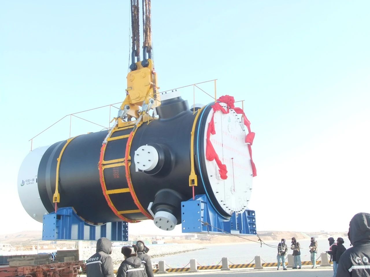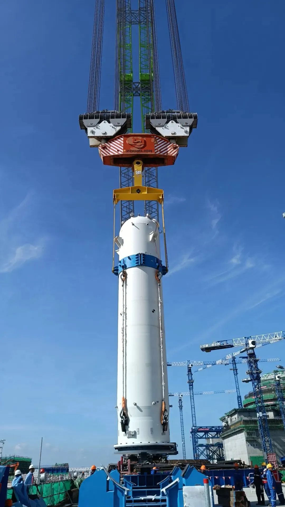 2022年7月,“華龍一號(hào)”漳州核電2號(hào)機(jī)組首臺(tái)蒸汽發(fā)生器(一環(huán)路)經(jīng)過(guò)翻轉(zhuǎn)、提升、變幅等一系列既定工序,順利吊裝就位。本次吊裝采用“主設(shè)備先行引入法”將蒸發(fā)器成功引入核島內(nèi)部結(jié)構(gòu),巨力索具核電專(zhuān)用吊具全程保障吊裝過(guò)程順利進(jìn)行,為后續(xù)2號(hào)機(jī)組穹頂?shù)跹b創(chuàng)造了有利條件。
