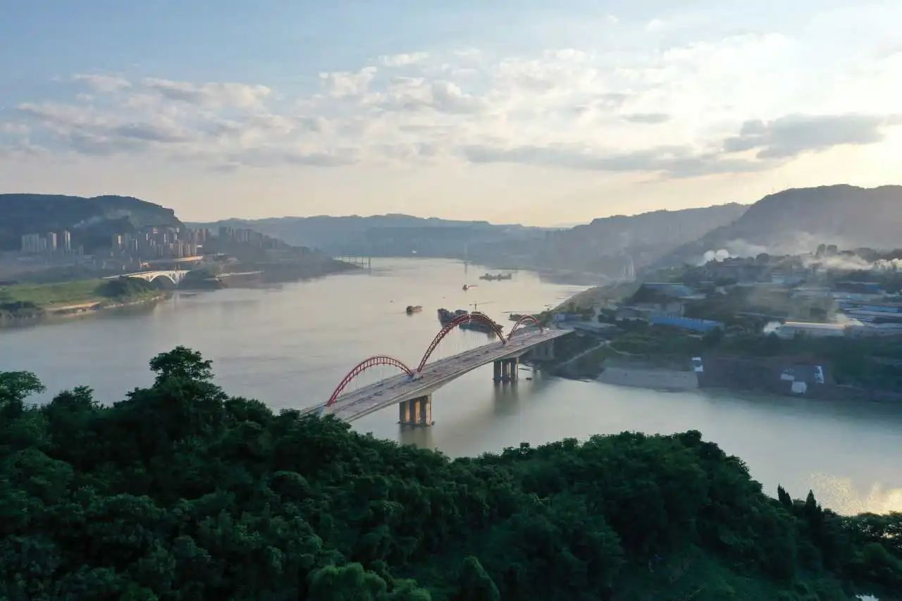 青山綠水之間,一座大橋騰空而起,不僅方便了當(dāng)?shù)厝嗣窠煌ǔ鲂?,促進(jìn)經(jīng)濟(jì)發(fā)展,而且在川渝大地,長江之側(cè)形成了一道亮麗的風(fēng)景線,兼具美學(xué)和實用價值。