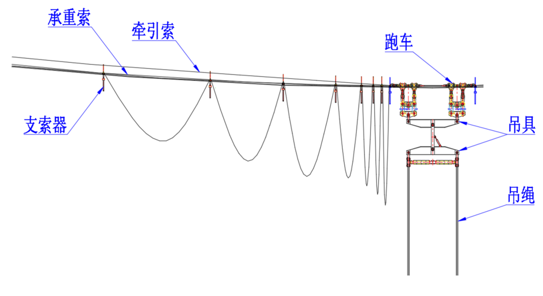 纜索吊裝系統(tǒng)主要由塔架支撐系統(tǒng)、錨固系統(tǒng)、繩索系統(tǒng)、天車和支索器系統(tǒng)、防雷系統(tǒng)等組成,并搭載了數(shù)字化工程管控平臺(tái),通過自動(dòng)監(jiān)測(cè)設(shè)備、監(jiān)控設(shè)備、外鏈系統(tǒng)等智慧工地的構(gòu)建,實(shí)現(xiàn)對(duì)吊裝現(xiàn)場(chǎng)檢查全方位時(shí)時(shí)監(jiān)控,極大地提升了施工項(xiàng)目安全生產(chǎn)的總體管控能力。
