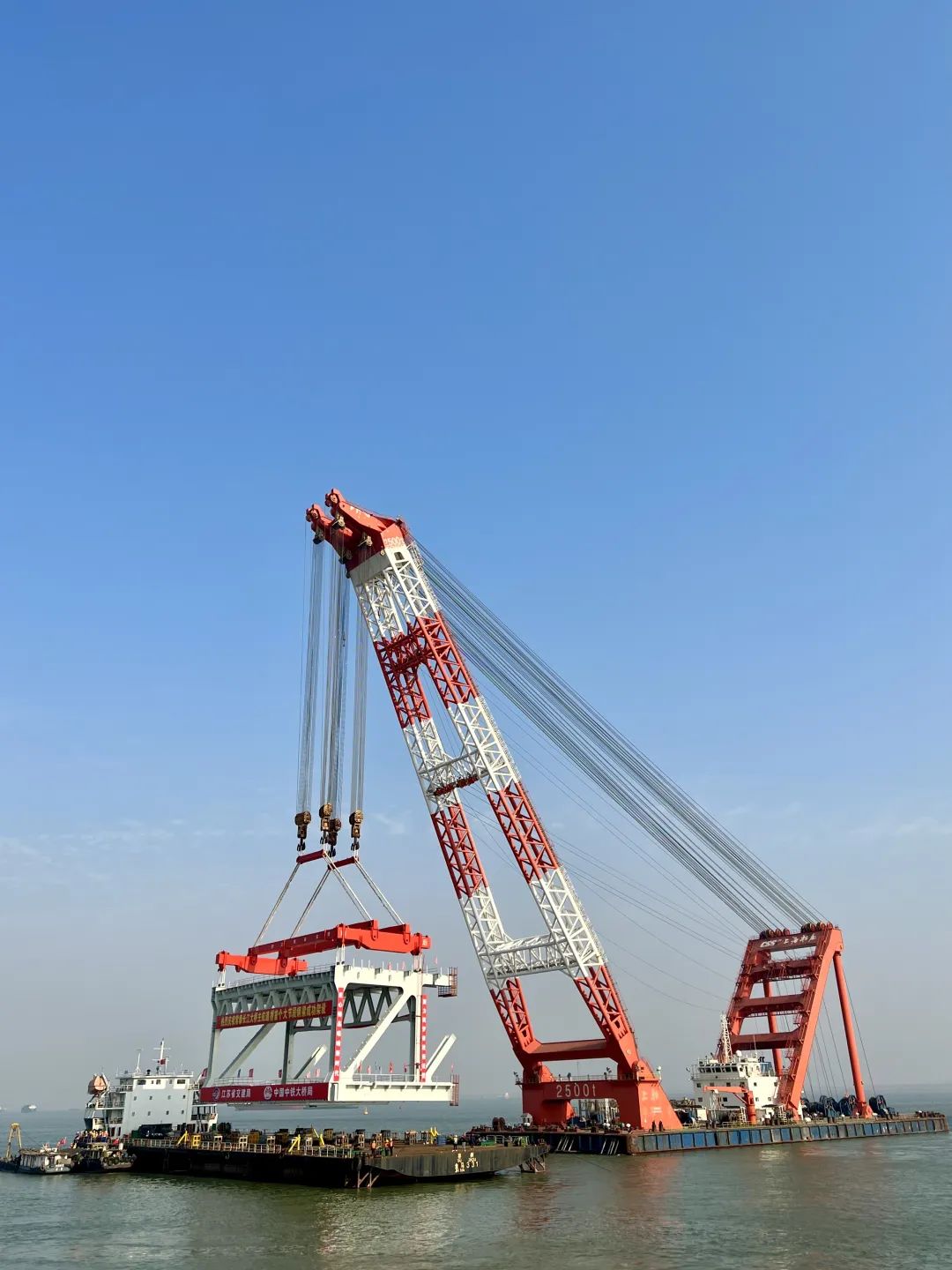 2023年2月,大橋主航道橋首個1280噸的鋼梁需在高空與兩側(cè)梁段實(shí)現(xiàn)毫米級對接,巨力索具1900噸大節(jié)段鋼梁吊具全程保障該項(xiàng)目吊裝順利進(jìn)行。