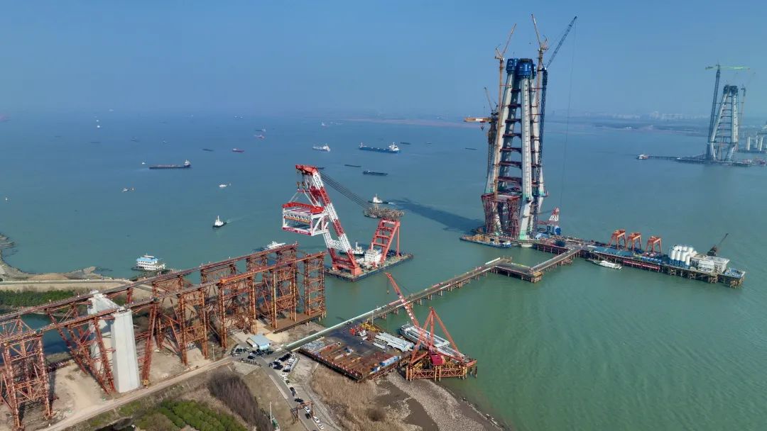 常泰長江大橋主航道橋是主跨1208米的斜拉橋,創(chuàng)下了最大跨度斜拉橋的世界紀(jì)錄。作為公鐵合建雙層復(fù)合型過江通道,常泰長江大橋上下層鋼橋面鋪裝總面積超25萬平方米,相當(dāng)于33個標(biāo)準(zhǔn)足球場。大橋建設(shè)過程中,實(shí)現(xiàn)六項(xiàng)世界之最、四項(xiàng)世界首創(chuàng):