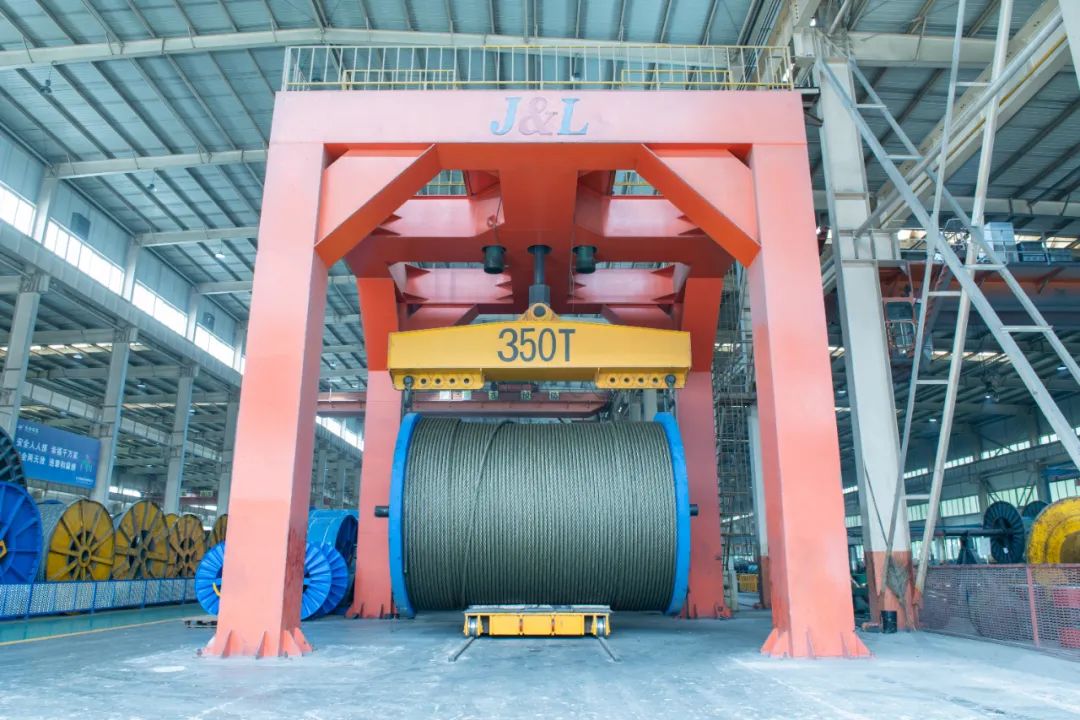 巨力索具為“秦航工2300”號(hào)提供起升、變幅、拋錨三大系統(tǒng)在內(nèi)的全船鋼絲繩配套,包括本次超千噸級(jí)吊裝所用全套索具系列產(chǎn)品。其中為滿足“秦航工2300”號(hào)亞洲第一吊高的施工需求,船舶工程師設(shè)計(jì)了超高的2300噸吊機(jī)主臂架,使主變幅鋼絲繩長度必須滿足主臂架設(shè)計(jì)要求,巨力索具項(xiàng)目團(tuán)隊(duì)根據(jù)設(shè)計(jì)方案結(jié)合生產(chǎn)工藝進(jìn)行改造提升,最終實(shí)現(xiàn)單根鋼絲繩長度超過10730米,凈重達(dá)215噸成功交付使用,該鋼絲繩成功投入使用標(biāo)志著我國鋼絲繩產(chǎn)業(yè)又向前邁出一步,既彰顯了巨力索具制造實(shí)力,也為我國在超長超重鋼絲繩領(lǐng)域發(fā)展畫上濃墨重彩的一筆。