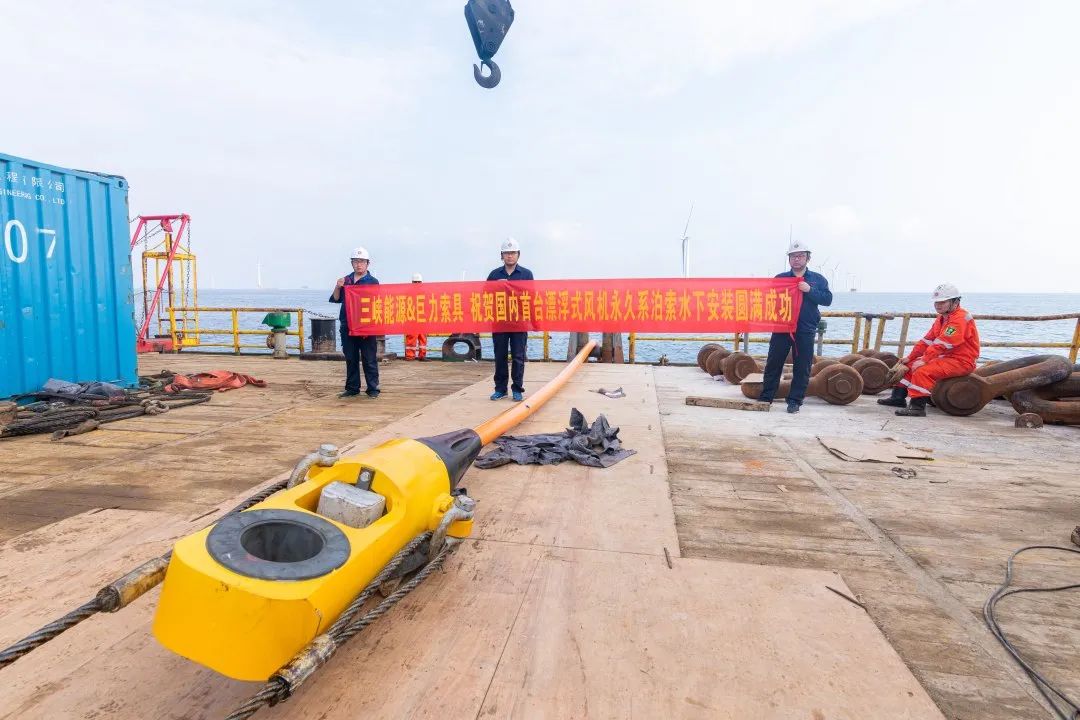 5月25日,由巨力索具自主研發(fā)生產(chǎn)的國(guó)內(nèi)首套海上漂浮式風(fēng)機(jī)永久系泊索順利通過(guò)驗(yàn)收。該套系泊索應(yīng)用在全球首臺(tái)抗臺(tái)風(fēng)型浮式海上風(fēng)機(jī),應(yīng)用此漂浮式風(fēng)機(jī)的三峽陽(yáng)江沙扒項(xiàng)目將成為首個(gè)國(guó)家級(jí)漂浮式示范項(xiàng)目,也將為后續(xù)我國(guó)深遠(yuǎn)海海上風(fēng)電項(xiàng)目的開(kāi)發(fā)以及海上風(fēng)電與海洋牧場(chǎng)、海水制氫等產(chǎn)業(yè)的融合發(fā)展奠定堅(jiān)實(shí)基礎(chǔ)。