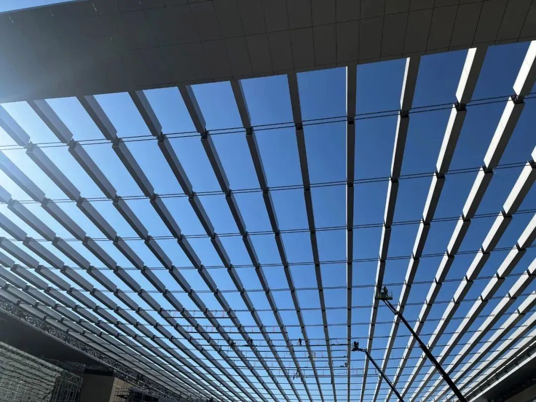 中法航空大學(xué)規(guī)劃之初就設(shè)計(jì)有這張半空中的巨大屋面,充分呈現(xiàn)航空領(lǐng)域的科技質(zhì)感,且順應(yīng)周圍山勢,兩側(cè)上挑中間自然凹弧,整個懸浮式大屋面造型如機(jī)翼一般輕盈,是目前亞洲最大跨度的不銹鋼密閉索-鋼桁架超長屋面,巨力索具負(fù)責(zé)該項(xiàng)目不銹鋼密閉索的供貨工作。