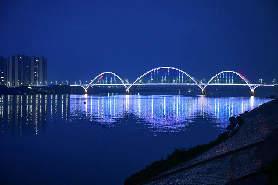 這座由湘潭城發(fā)集團(tuán)匠心重建的現(xiàn)代化橋梁,北起岳塘區(qū)書院路,南接湘潭縣鳳凰西路,為雙向六車道,全長1885.5米,其中主橋長540米,橋?qū)?7.5米,主跨200米,是湘江流經(jīng)湘潭架設(shè)的第八座大橋。