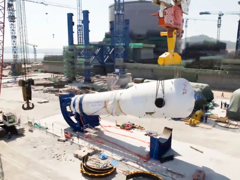 9月26日13時48分,隨著現(xiàn)場總指揮一聲令下,3200噸履帶式大吊車緩緩啟動,漳州核電1號機組首臺蒸汽發(fā)生器(第二環(huán)路)經(jīng)過翻轉(zhuǎn)、提升、變幅等一系列既定工序,于9月27日1時06分順利吊裝就位。整個吊裝過程中所用的吊梁、配套索具、提吊耳軸均由巨力索具提供,為后續(xù)主設(shè)備吊裝奠定了堅實基礎(chǔ),漳州核電項目“主設(shè)備先行引入法”施工贏得“開門紅”。