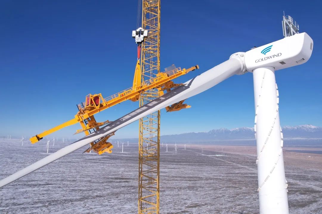近日,在新疆烏魯木齊金風(fēng)天翼20MW風(fēng)電項目場,巨力索具研發(fā)的6MW大角度斜插單葉片吊具順利完成吊裝工作,標(biāo)志著巨力索具自主研發(fā)的國內(nèi)首套陸上大兆瓦斜插單葉片吊具首吊成功,為國內(nèi)大兆瓦陸上風(fēng)電機組吊裝提供了高效、安全、便捷的創(chuàng)新解決方案。