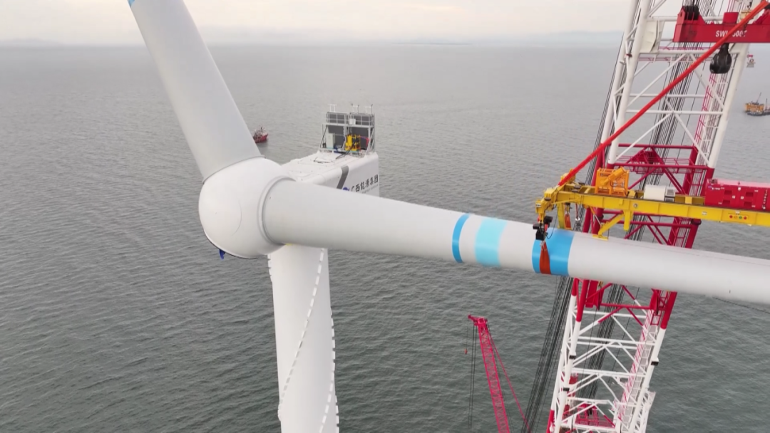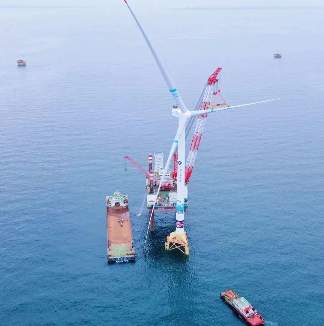 據(jù)悉,本次吊裝的風(fēng)電機(jī)組單支葉片長111.5米、重42噸,葉輪掃風(fēng)面積40627平方米。